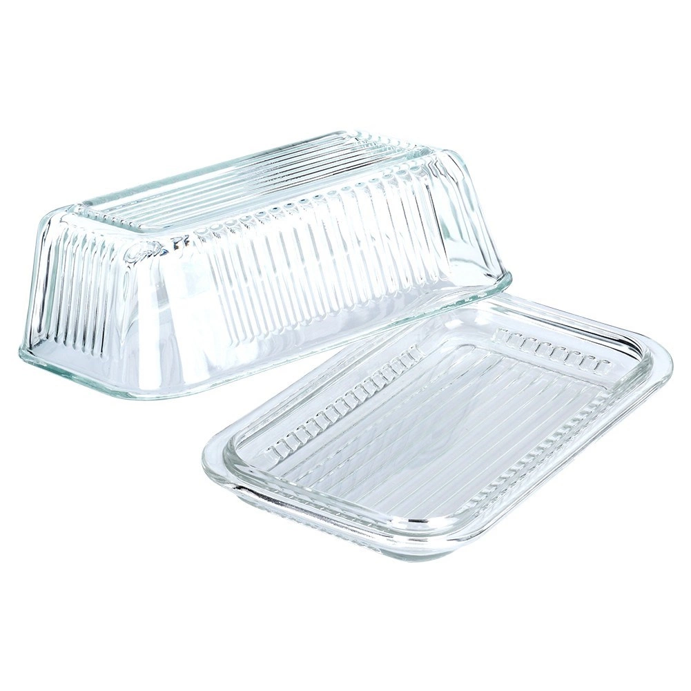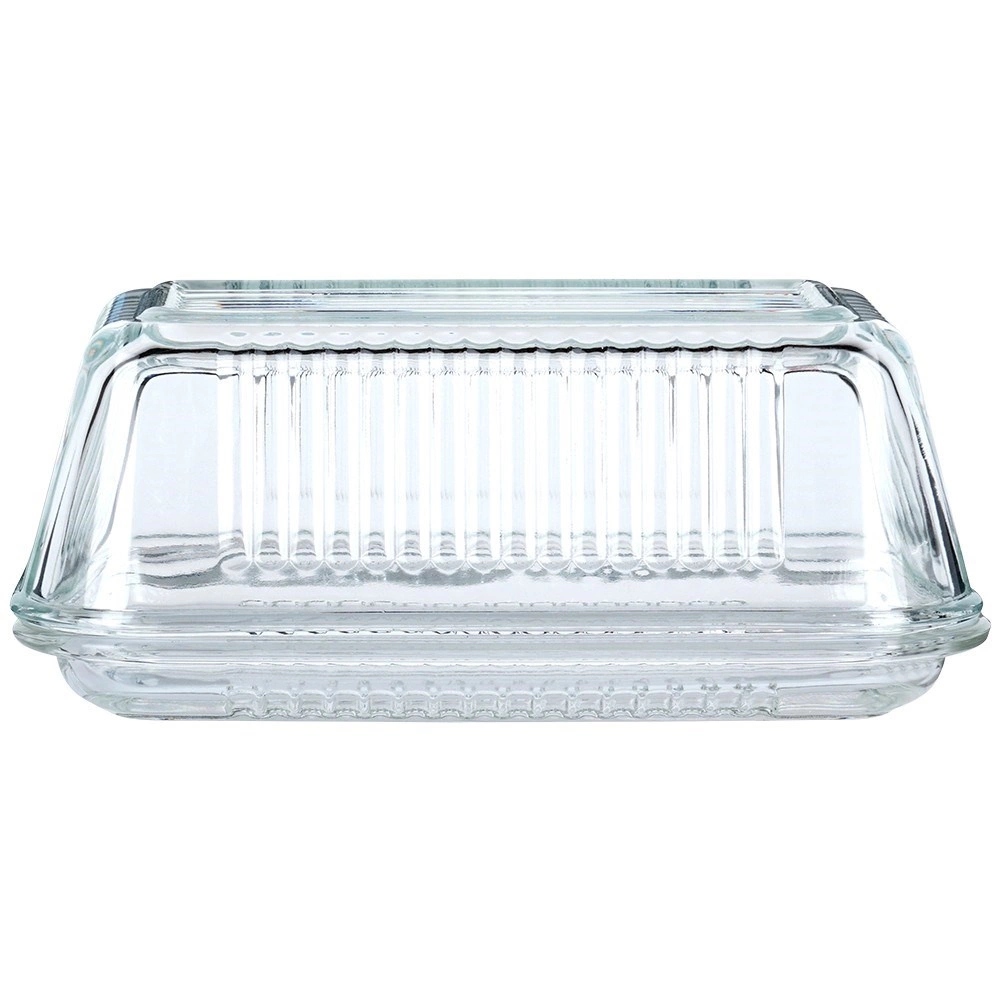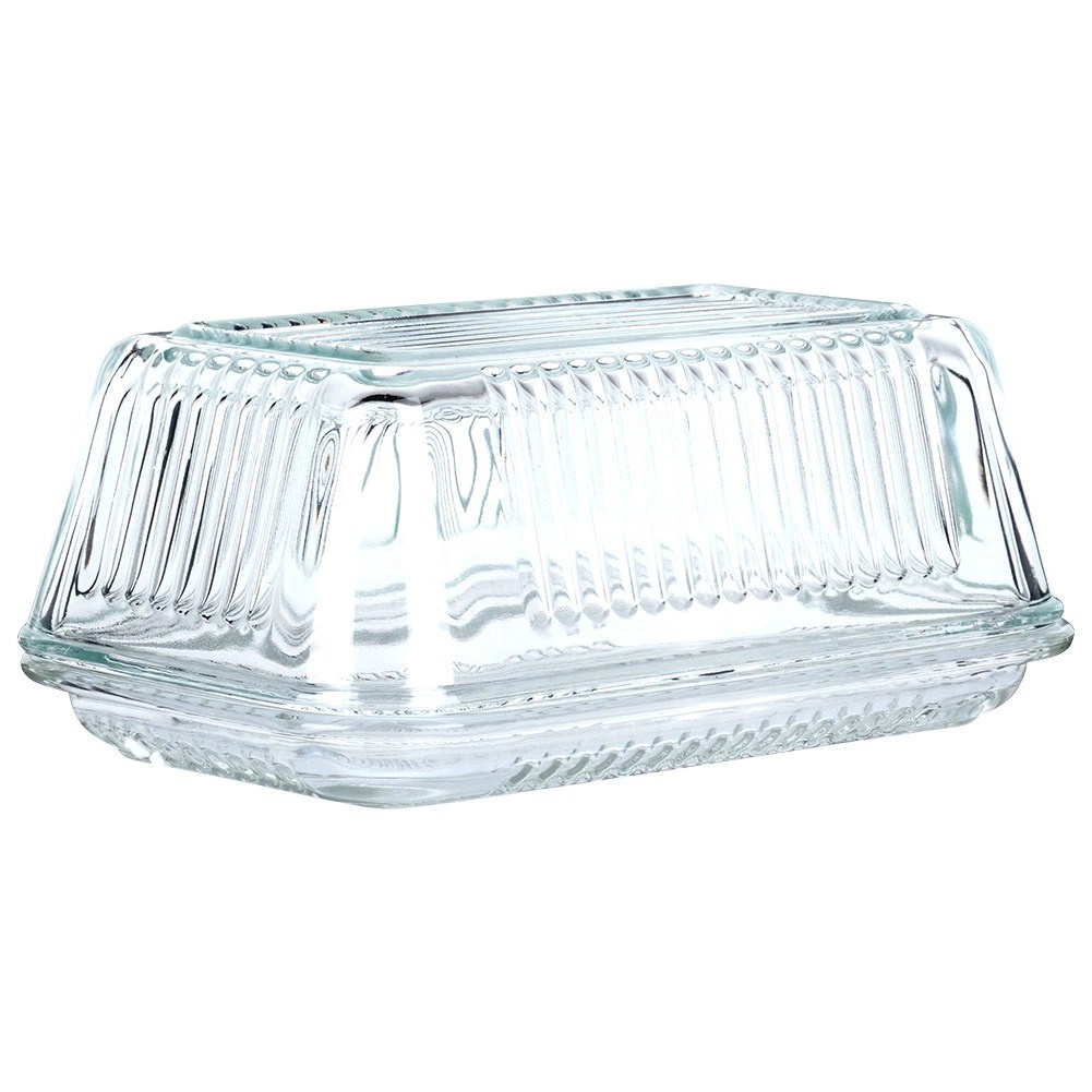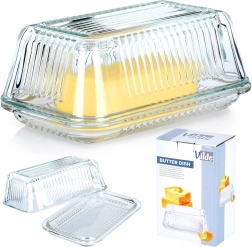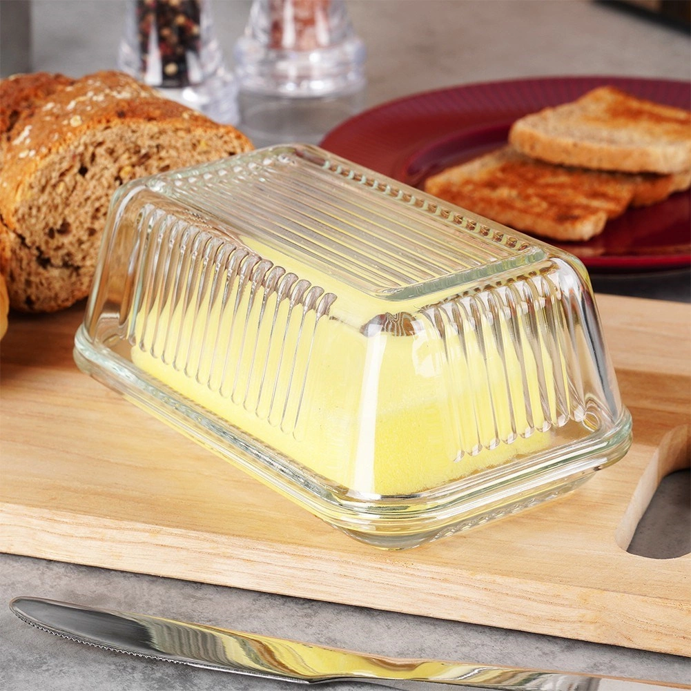 Elegantiška stiklinė sviestinė Vilde su klasikine forma ir gofruotu dizainu išlaiko sviestą šviežią ir estetiškai patiekiamą. Pagaminta iš aukštos kokybės, tvirto skaidraus stiklo, turi praktišką dangtį, kuris saugo nuo kvapų ir nešvarumų, o dėl permatomos medžiagos lengvai matysite likusį kiekį. Tinka plauti indaplovėje.