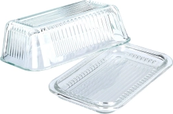 Stiklinė sviestinė Vilde – stilingas ir praktiškas kiekvienos virtuvės akcentas. Skaidrus, kokybiškas stiklas su dekoratyviniu gofravimu pabrėžia elegantišką išvaizdą ir kartu palengvina suėmimą. Klasikinė stačiakampė forma puikiai dera su bet kokiu stalo servizu ir leidžia patogiai patiekti sviestą ant stalo bei tvarkingai laikyti šaldytuve.