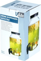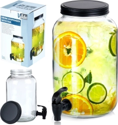 Stilingas stiklinis gėrimų dozatorius, kurio talpa 3,2 l, su patogiu čiaupu ir sraigtiniu dangteliu juodos spalvos. Idealiai tinka limonadams, vandeniui su vaisiais, šaltai arbatai ar punšui. Dėl plataus kaklelio lengva pildyti ir plauti, o stiklinis korpusas yra tinkamas sąlyčiui su maistu.