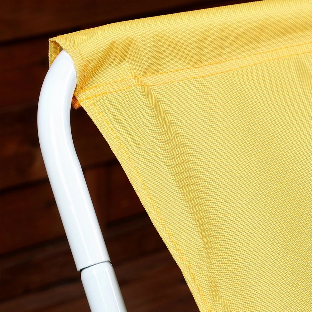 Patvari poliesterio tekstilė geltonų atspalvių yra maloni liesti ir leidžia patogiai ilsėtis tiek paplūdimyje, tiek sode.