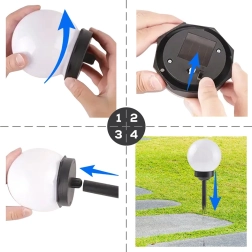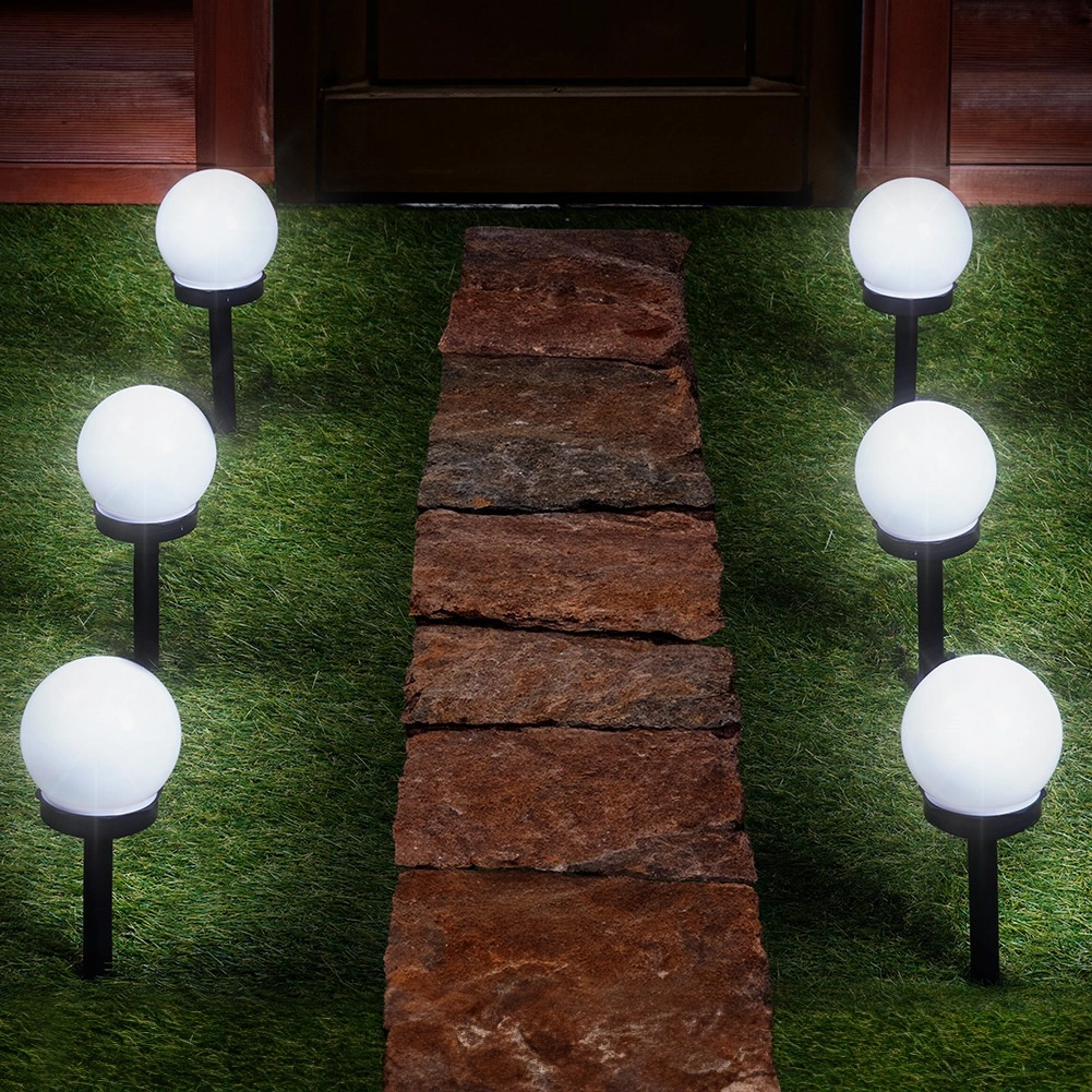 Sukurkite saugų ir stilingą takų, lysvių bei įvažiavimų apšvietimą. Sferiniai difuzoriai, kurių skersmuo 10 cm, sklaido ryškią baltą šviesą (apie 6500 K), kuri elegantiškai pabrėžia bet kurį eksterjerą. Maitinimas iš saulės reiškia belaidį veikimą be laidų ir elektros sąskaitų.