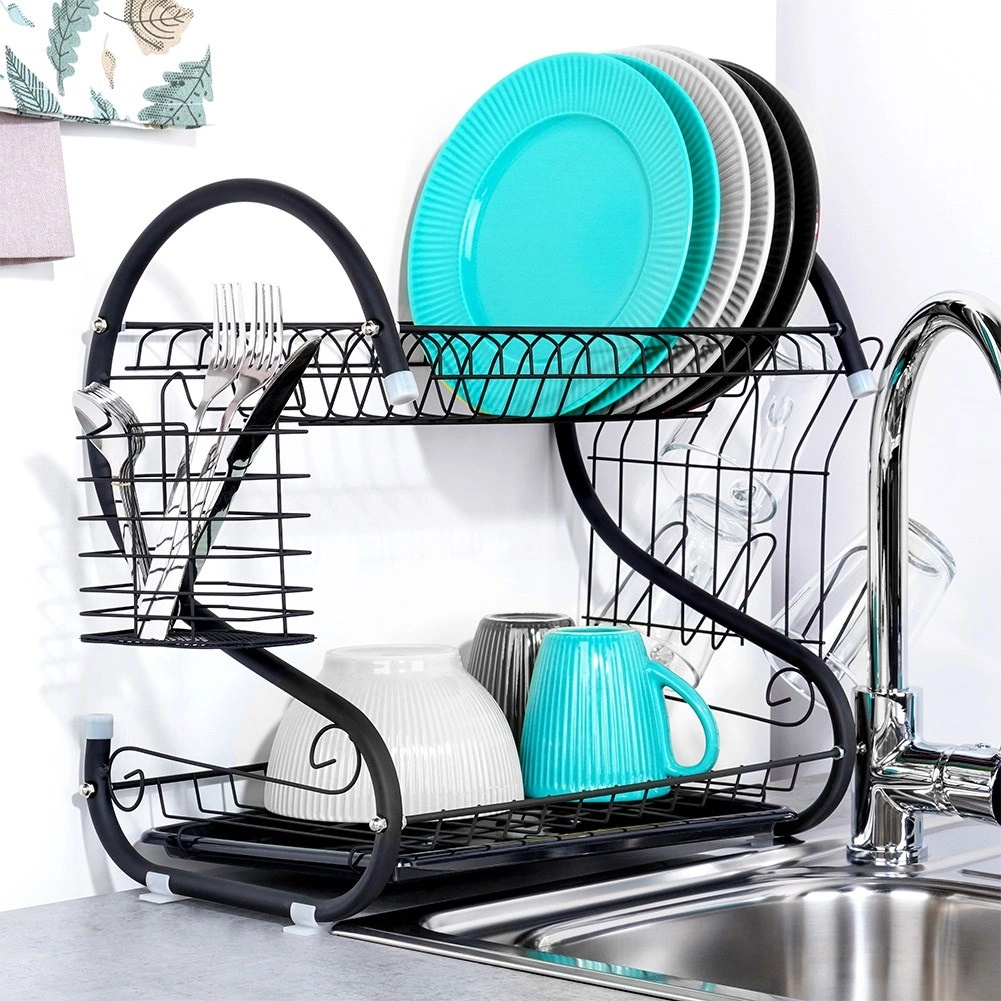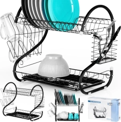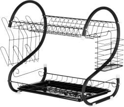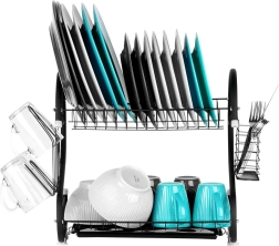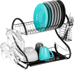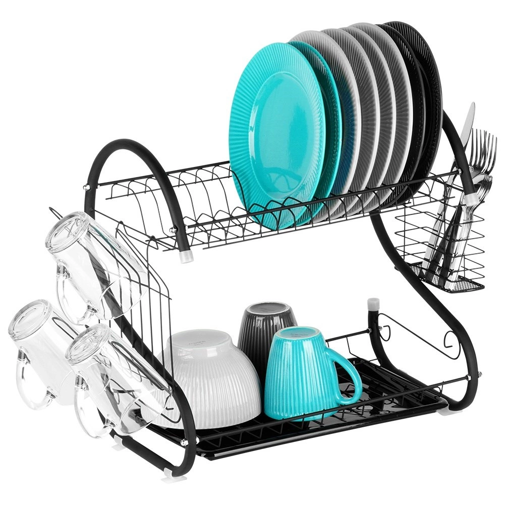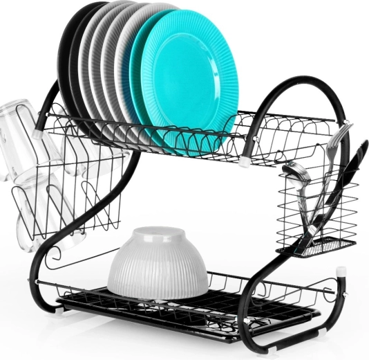 Viršutinis aukštas lėkštėms, apatinis – dubenims, puodeliams ir kitai įrangai pagreitina džiūvimą ir taupo vietą ant stalviršio.