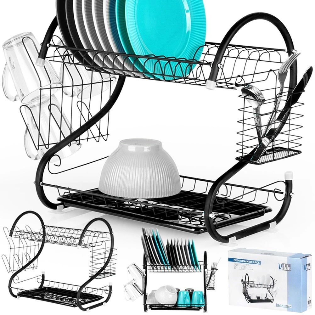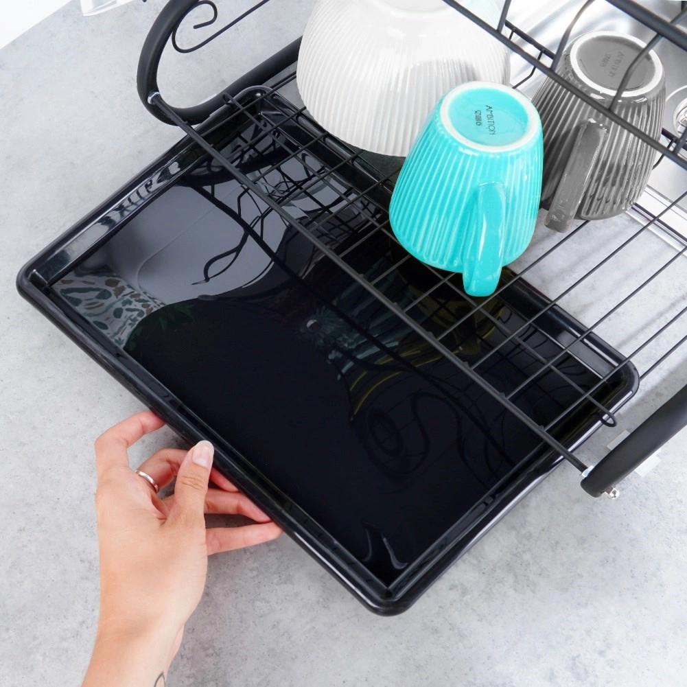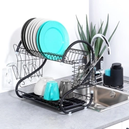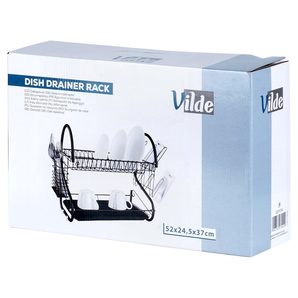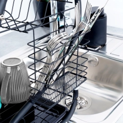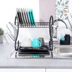 Kompaktiškas, bet itin talpus dviejų aukštų indų džiovintuvas padeda greitai išdžiovinti lėkštes, dubenis, stiklines ir stalo įrankius, kartu apsaugodamas stalviršį nuo vandens lašų. Konstrukcija iš patvaraus metalo matinės juodos spalvos atrodo elegantiškai ir puikiai dera tiek su moderniomis, tiek su klasikinėmis virtuvėmis.