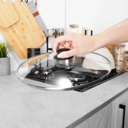Integruotas garų išleidimo atidarymas reguliuoja perteklinius garus, o lengvai išgaubta forma padeda cirkuliuoti karštam orui. Ergonominė juoda rankenėlė iš patvarios medžiagos maloniai laikosi ir palengvina valdymą. Dangtis tinka plauti indaplovėje ir atlaiko temperatūrą iki +200 °C.