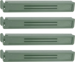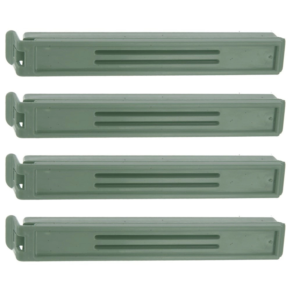 4 patvarių maišelių spaustukų rinkinys ilgiau išlaikys jūsų maistą šviežią ir saugiai uždarytą. Patogūs žali spaustukai, 11 × 1,5 cm, lengvai sandarina kavos, prieskonių, makaronų ar šaldytų produktų maišelius ir neleidžia byrėti turiniui bei patekti orui ir drėgmei.
