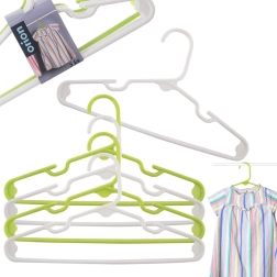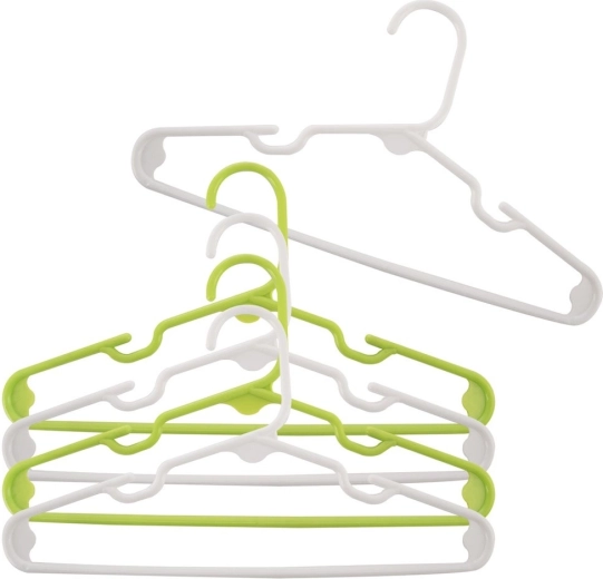 Laikykite vaiko drabužinę tvarkingą su 5 lengvų ir patvarių pakabų rinkiniu. Jų išmatavimai pritaikyti vaikiškiems dydžiams, kraštai lygūs, o praktiškos įpjovos pečių srityje. Baltos ir žalios spalvų derinys suteikia gaivumo ir puikiai tinka vaikų kambariui. Universalus naudojimas, saugus dizainas ir tvirtas atlikimas užtikrina, kad drabužiai išliks tvarkingi ir nesideformuos.