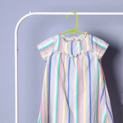 5 vaikiškų pakabų rinkinys puikiai tinka marškinėliams, megztiniams, suknelėms su petnešėlėmis ir lengvoms kelnėms. Pakabos turi apvalintus kraštus, kad švelniai elgtųsi su vaikiškais drabužiais, ir įpjovas suknelėms su plonomis petnešėlėmis. Apatinė skersinė padeda pakabinti šalikus ar plonas kelnes.