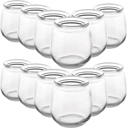 Elegantiški 200 ml stikliniai indeliai, praktiškame 12 vienetų rinkinyje, idealiai tinka patiekti jogurtus, desertus, namines uogienes ar smulkius užkandžius. Pagaminti iš skaidraus, tvirto stiklo ilgaamžiškumui užtikrinti, su plačia anga patogiam pildymui ir plovimui. Tinka indaplovei, šaldytuvui ir šaldikliui (iki +80 °C).