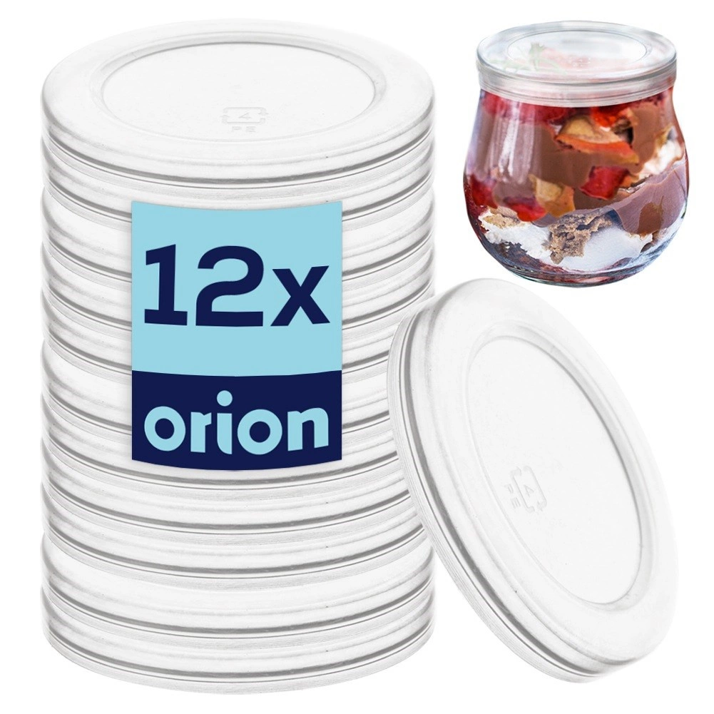 Praktiškas 12 skaidrių dangtelių rinkinys, kurių skersmuo 6,2 cm, skirti jogurto ir desertų stiklainiams, užtikrina patikimą sandarumą, ilgalaikį šviežumą ir pakartotinį naudojimą. Suderinami su 200 ml stiklainiais, pagaminti pagal Europos standartus.