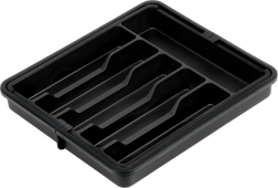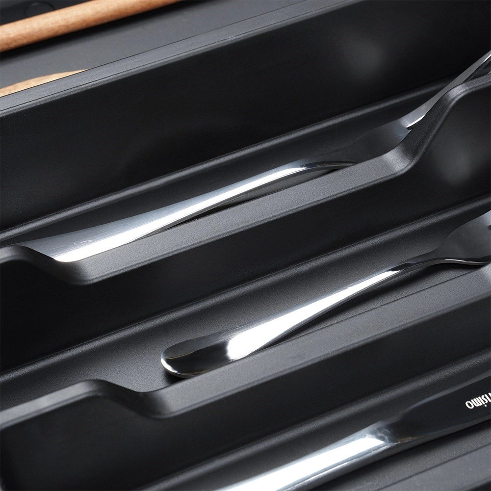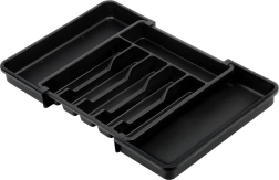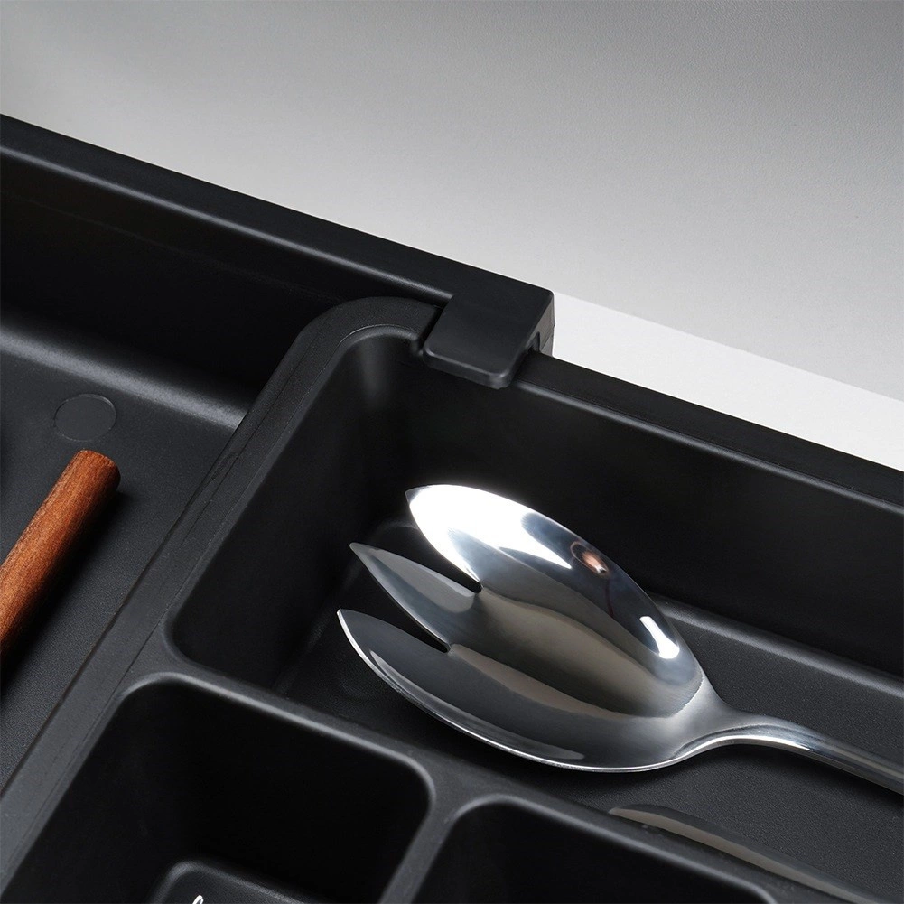 Įdėklas pagamintas iš tvirto ir patvaraus plastiko su lygiu paviršiumi lengvai priežiūrai. Elegantiška juoda spalva dera tiek prie modernių, tiek prie klasikinių virtuvių ir padeda išlaikyti idealią tvarką kasdien.