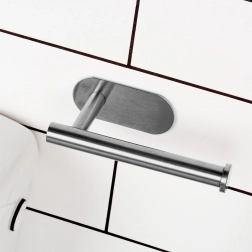 Praktiškas ir patvarus tualetinio popieriaus laikiklis iš nerūdijančio plieno sidabrinės spalvos suteiks jūsų vonios kambariui modernų dizainą, paprastą naudojimą ir ilgą tarnavimo laiką. Kompaktiški matmenys 16,5 × 7,7 × 4,5 cm ir paprastas montavimas be gręžimo naudojant pridėtas dvipuses lipnias juosteles.