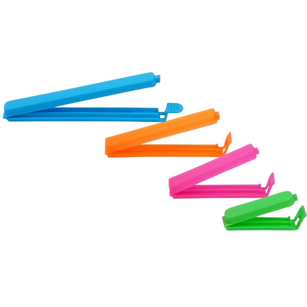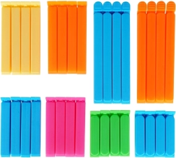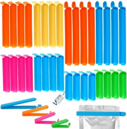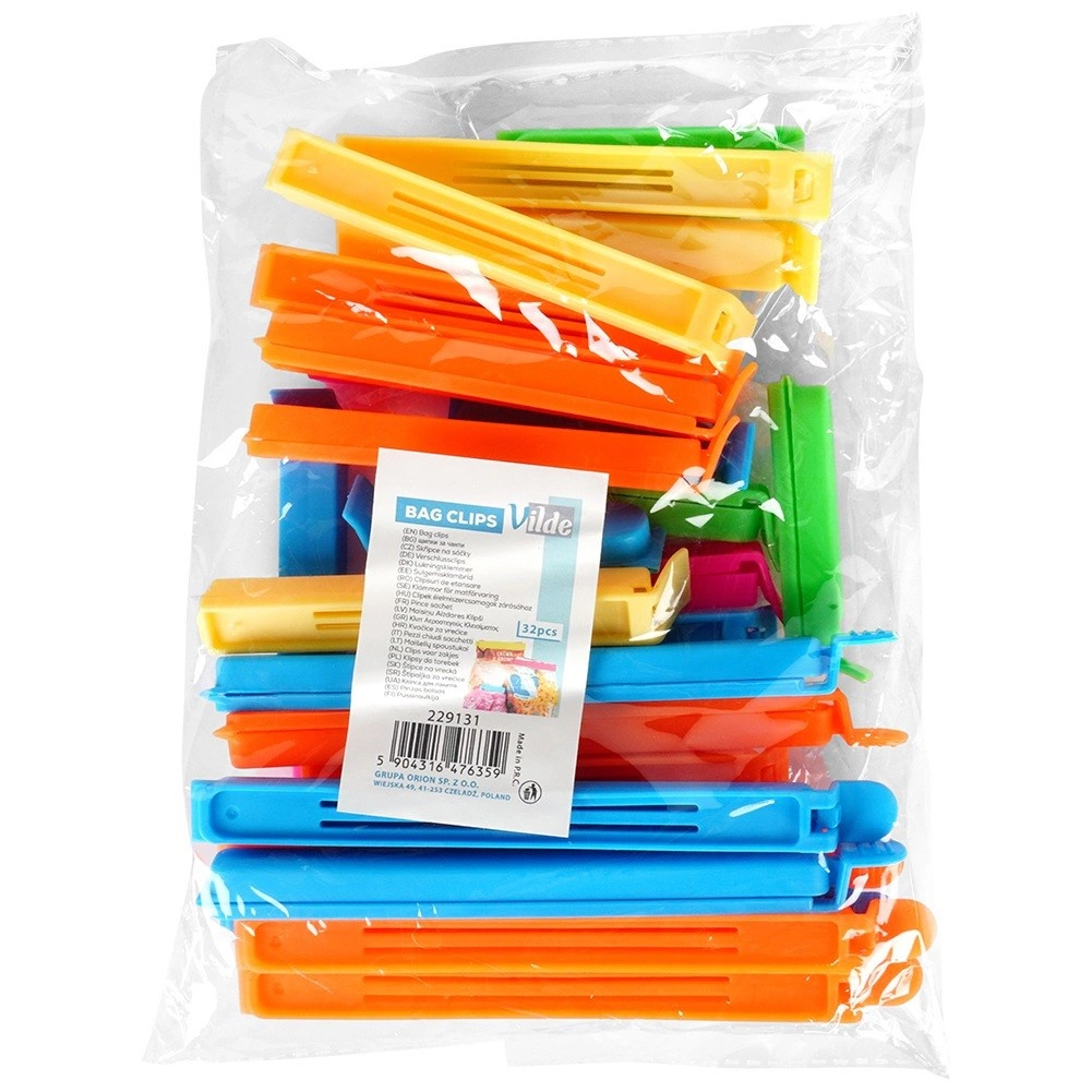 Praktiškas 32 pakartotinai naudojamų spaustukų rinkinys 4 dydžiais, skirtas sandariam maisto maišelių uždarymui. Patvarūs plastikiniai spaustukai penkių spalvų mišinyje išlaiko šviežumą ir apsaugo nuo drėgmės, išbyrėjimo ir turinio sugadinimo. Paprasta naudoti vienu judesiu, idealu virtuvei, sandėliukui ir šaldikliui.