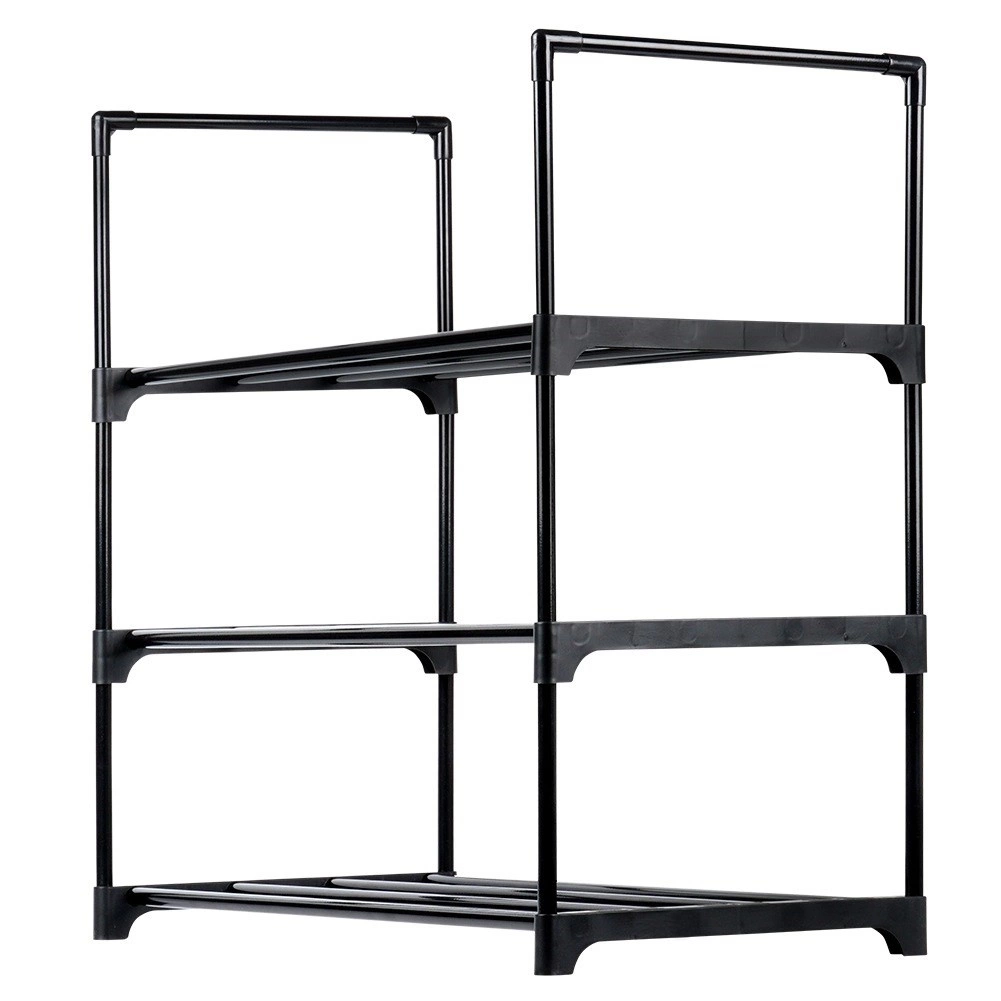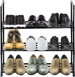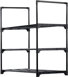 Palaikykite batų tvarką su elegantišku ir funkcionaliu batų stovu, kuris siūlo tris erdvius lygius kasdieniams ir sezoniniams batams. Milteliniu būdu dengtas metalas juodos spalvos suteikia modernią išvaizdą ir atsparumą įbrėžimams, o atviros lamelės skatina oro cirkuliaciją ir greitą džiūvimą.