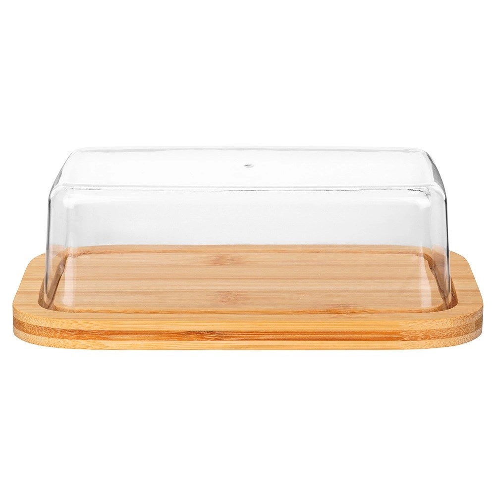 Elegantiška bambukinė sviestinė su skaidriu dangteliu kasdieniam naudojimui. Ideali sviesto laikymui ir patiekimui, su natūralia bambukine pagrindo lentele ir patvariu skaidriu gaubtu, kuris saugo šviežumą ir skonį. Klasikinė forma tinka bet kuriai virtuvei, o lengva priežiūra užtikrina nepriekaištingą higieną.
