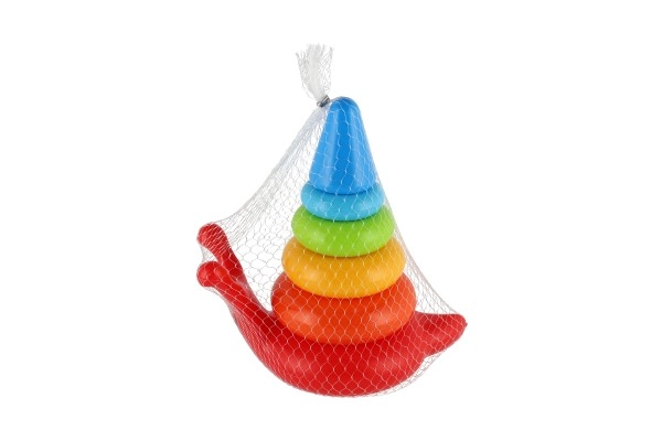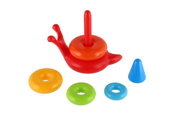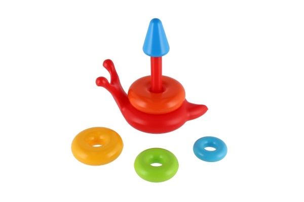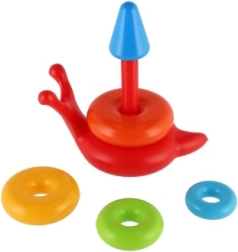 Žaislas turi sraigės formos pagrindą su mielomis ausytėmis ir šypsena, kuris suteikia džiaugsmo ir žaismingumo kasdieniam žaidimui.