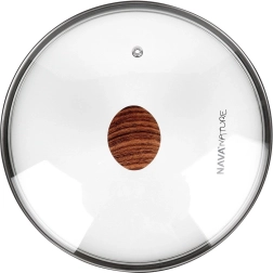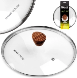 Praktiškas stiklinis dangtis NAVA Nature, 24 cm skersmens, yra idealus priedas tokio pat dydžio puodams, keptuvėms ir troškintuvams. Karščiui atsparus skaidrus stiklas leidžia kontroliuoti gaminimą nekeliant dangčio, taip taupoma energija ir išlaikoma šiluma bei drėgmė indo viduje.