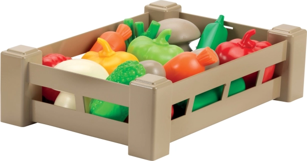 Ši realistiška plastinė dėžutė pripildyta įvairiaspalvių vaisių ir daržovių maketų, kurie skatina vaikų vaizduotę ir padeda lavinti smulkiąją motoriką. Idealu vaikų virtuvėlėms, žaidimų kampeliams ir darželiams.