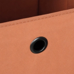 Sulankstomi tekstiliniai krepšiai neutralių spalvų su metaline akutė patogiam ištraukimui. Idealu drabužiams, žaislams ar aksesuarams.