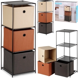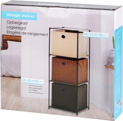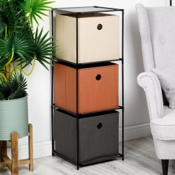 Ši siaura lentyna, kurios matmenys 34,5 × 34,5 × 100 cm, derina patvarų juodą metalinį rėmą ir tris tekstilines dėžes smėlio, rudos ir antracito spalvų. Kiekviena dėžė turi metalinę akutę patogiam naudojimui ir yra sulankstoma, tad nenaudojama neužima vietos. Idealus sprendimas aiškiam rūšiavimui ir laikymui.