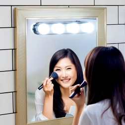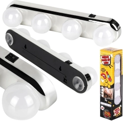 Praktiška veidrodžio šviesa su keturiomis LED lemputėmis suteikia ryškią ir tolygiai pasiskirsčiusią baltą šviesą makiažui ir kasdienei priežiūrai. Dėl paprasto montavimo su siurbtukais be įrankių ją greitai pritvirtinsite prie bet kurio lygaus veidrodžio. Ji maitinama baterijomis, mobili ir pagaminta iš kokybiškos, patvarios medžiagos, todėl tinka vonios kambariui, miegamajam ir garderobui.