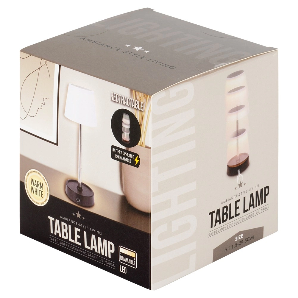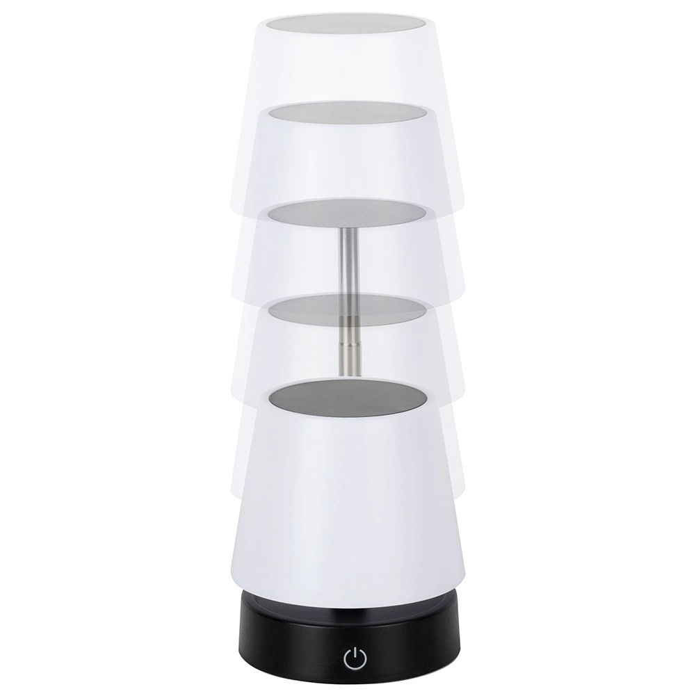 Modernus stalinysis LED šviestuvas su reguliuojamu aukščiu 11–29,5 cm, jutiminiu valdymu ir pritemdymu patogiam darbiniam ir poilsio apšvietimui. Siūlo šiltą baltą šviesą, USB‑C įkrovimą ir elegantišką juodo pagrindo, metalinio stiebo bei balto gaubto derinį. Puikiai tinka ant rašomojo stalo, naktinio staliuko ir svetainėje.