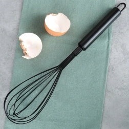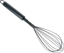 Puikiai tinka maišyti tešlas, ruošti marinatus ir švelniai tirštinti padažus. Ergonomiška rankena patogiai laikosi net dirbant ilgiau, o kabinamoji kilpelė palengvina laikymą. Juoda danga atrodo moderniai ir lengvai prižiūrima – plakiklį galima plauti indaplovėje.