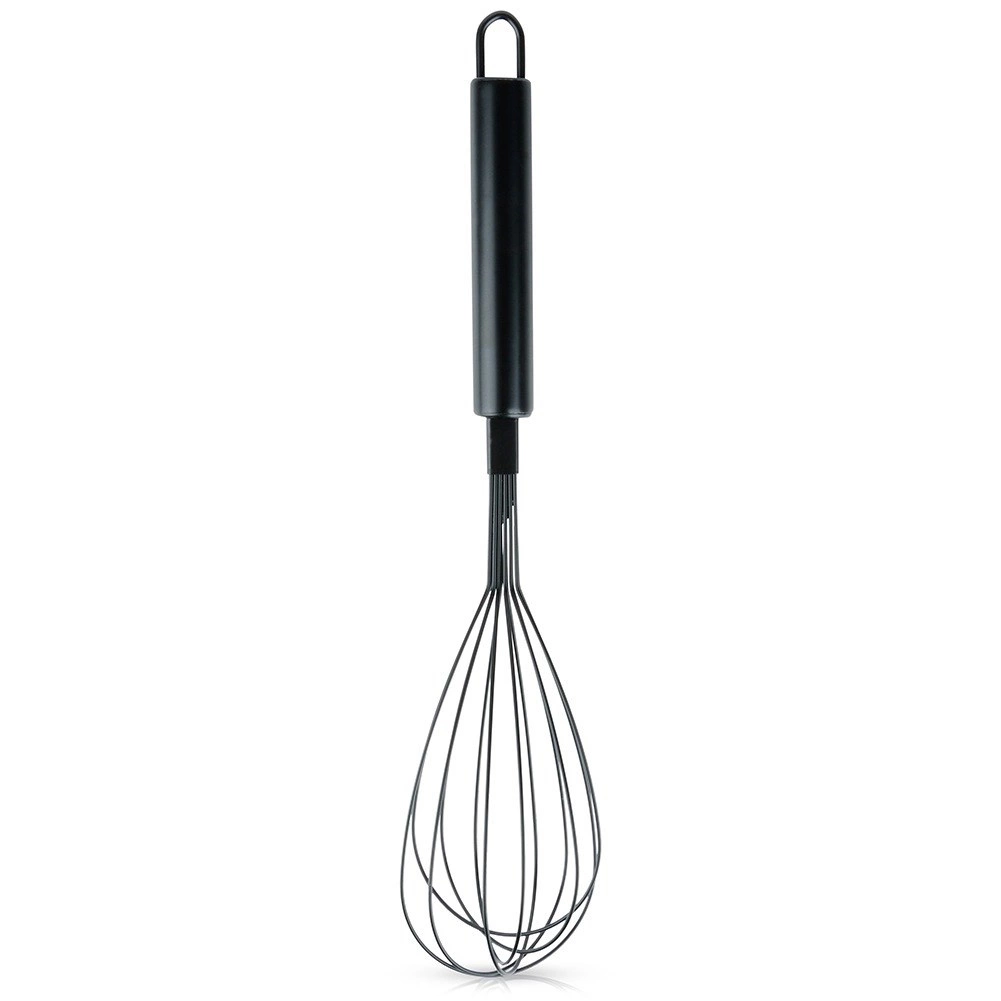 Elegantiškas ir patvarus juodos spalvos nerūdijančio plieno plakiklis suderina lengvumą ir tvirtumą kasdieniam gaminimui ir kepimui. Dėl maždaug 6 cm pločio ir baloninės galvutės jis greitai ir tolygiai įorina ingredientus, todėl pasieksite purias putas ir glotnius padažus.