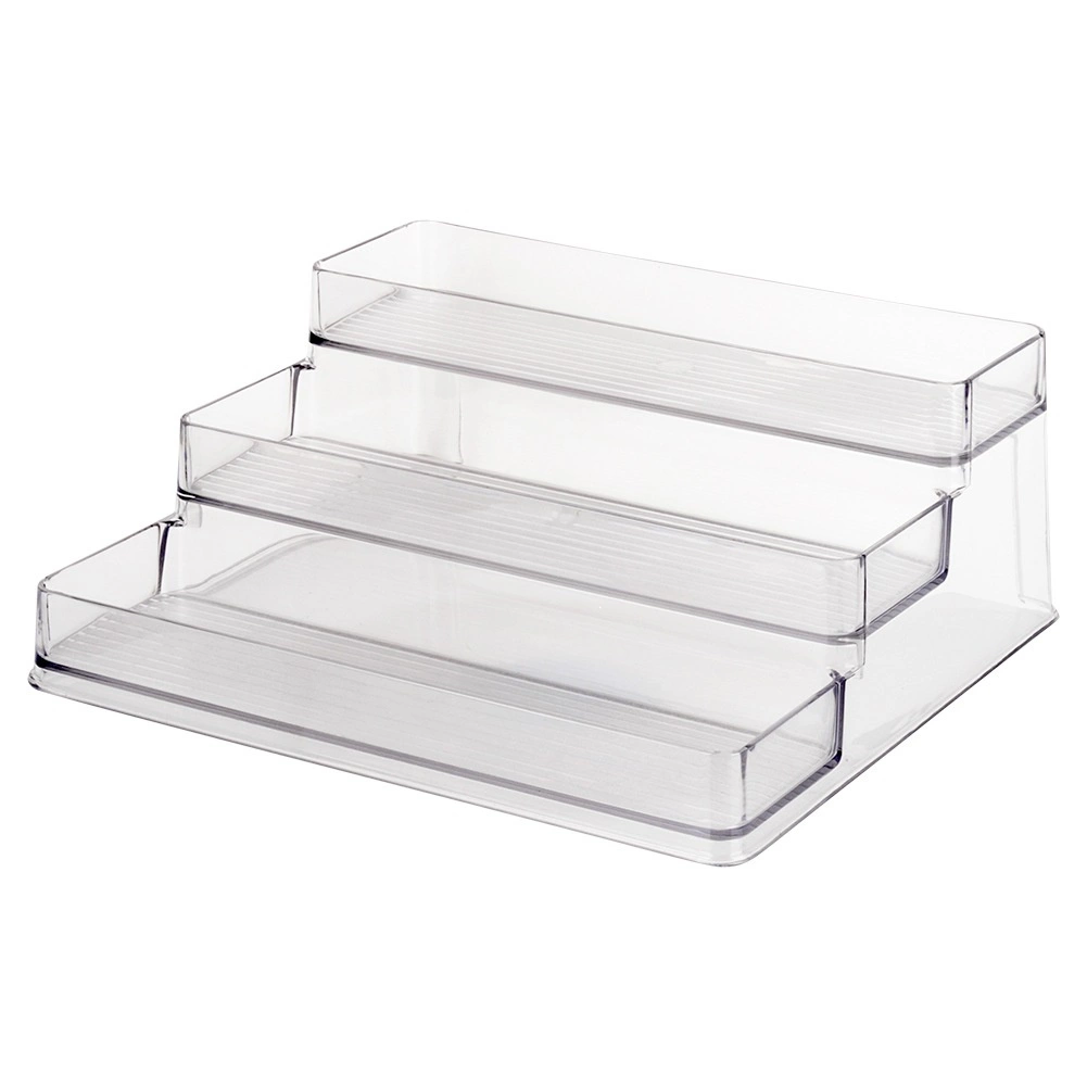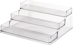 Ši universali trijų aukštų organizatoriaus lentynėlė iš skaidraus plastiko akimirksniu pagerins tvarką ir matomumą jūsų virtuvėje, vonioje ar sandėliuke. Skaidri medžiaga leidžia greitai rasti reikiamą ingredientą ar kosmetiką, o pakopinė konstrukcija taupo vietą ir didina talpą.