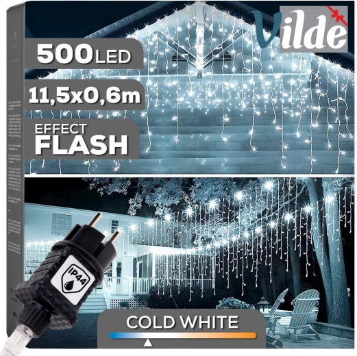 Stilinga šviesos užuolaida su 500 taupių LED sukuria žavingą šventinę dekoraciją ant fasado, pergolės ar interjere. Skaidrūs laidai ir skirtingi kabančių šakų ilgiai (35, 40, 45 ir 60 cm) suteikia realistišką spindinčių varveklių efektą, o dalis diodų lengvai mirga dar įspūdingesniam vaizdui.