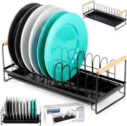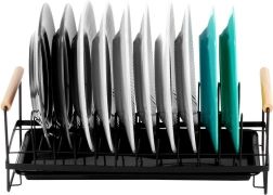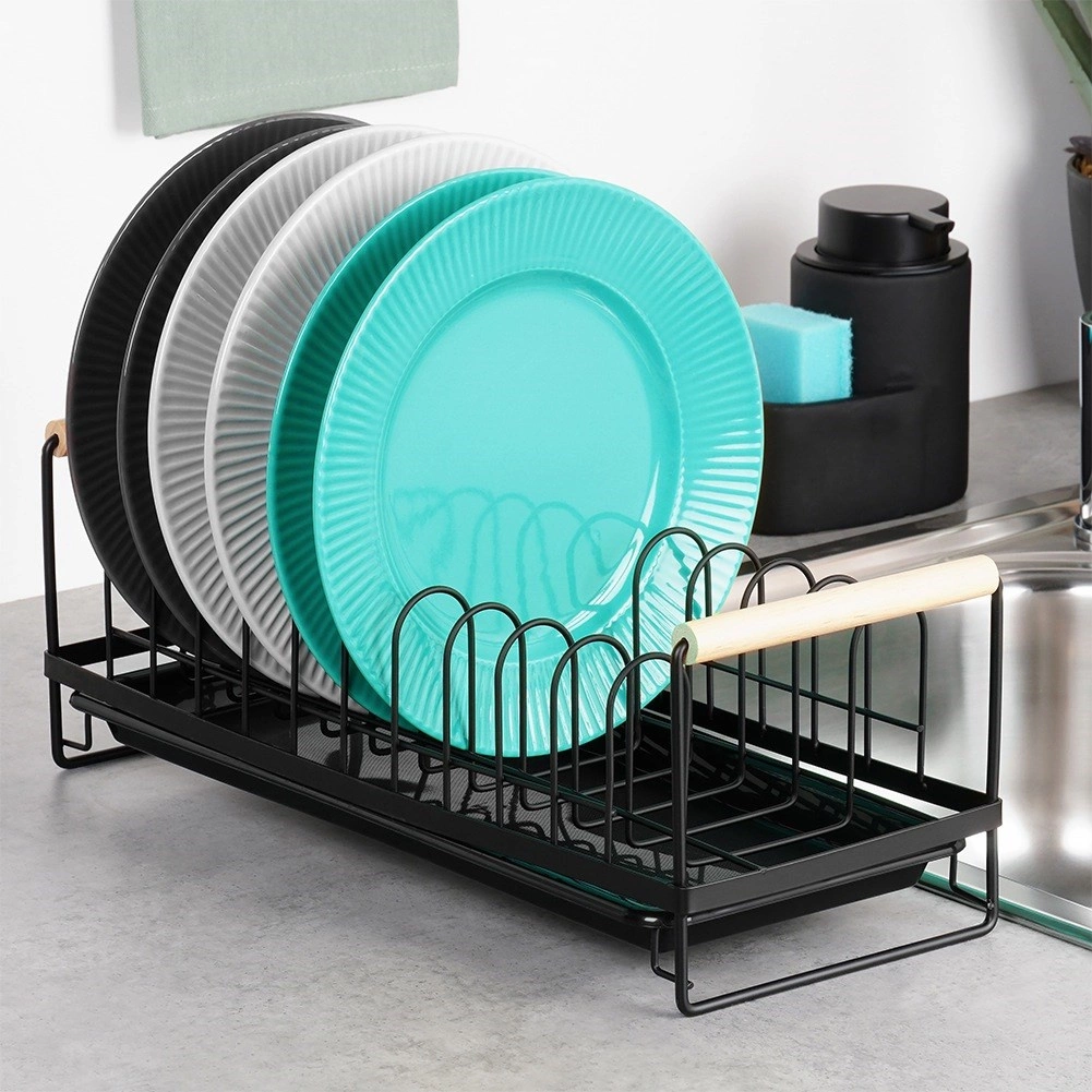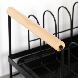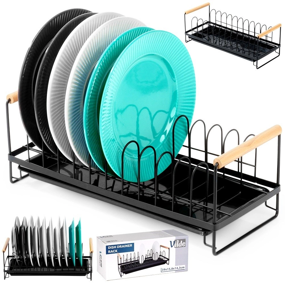 Kompaktiškas indų džiovintuvas, talpinantis iki 10 lėkščių, palaiko virtuvės erdvę sausą ir tvarkingą. Patvari metalinė konstrukcija matinės juodos spalvos, išimamas lašėjimo padėklas ir patogios bambukinės rankenos lengvam pernešimui. Stilingas industrinis dizainas tinka tiek modernioms, tiek klasikinėms virtuvėms.