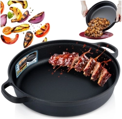 Keptuvė atspari aukštai temperatūrai ir tinkama naudoti ant viryklės, orkaitėje, griliuje ir tiesioginėje kaitroje – ideali namų ir lauko gaminimui.