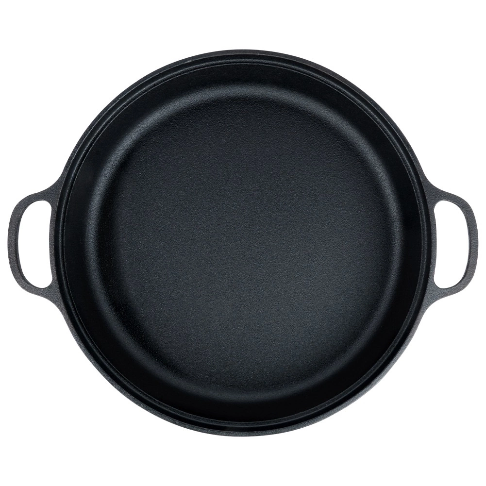 Gili ketaus keptuvė, 30 cm skersmens ir 3,5 l talpos, universaliam gaminimui namuose ir lauke. Suteikia tolygų šilumos pasiskirstymą, ilgą šilumos kaupimą ir tinka viryklei, orkaitei ir griliui. Du tvirti šoniniai laikikliai užtikrina saugų nešimą. Be nelipnių dangų, ideali kepimui, troškinimui ir apkepams.