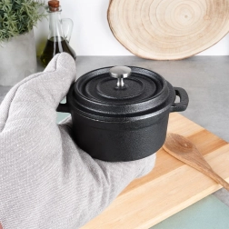 Šis miniatiūrinis ketaus puodas (kokotė) išsiskiria patvaria konstrukcija ir universalumu. Tinka viryklei, tiesioginei ugniai ir orkaitei, todėl lengvai paruošite ir patieksite sriubas, padažus, apkepus, daržoves ar desertus.