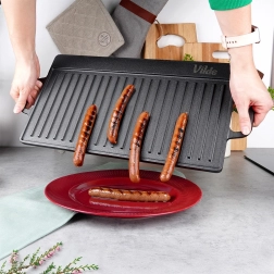 Lygi pusė kepimui ir blynams, briaunuota pusė ryškioms grilio žymėms ir perteklinių riebalų nutekėjimui.