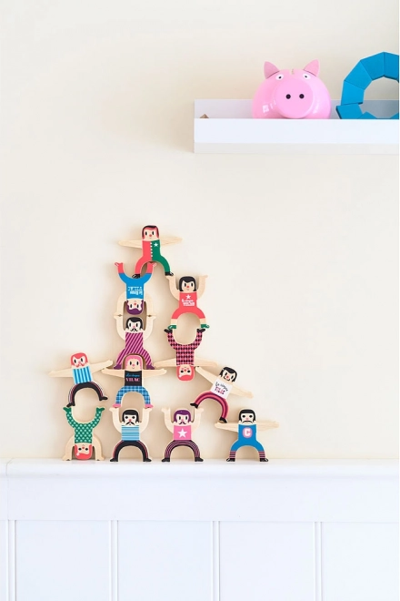 Pastatykite savo akrobatų bokštą ir išbandykite išradingumą bei fantaziją. Spalvingos medinės figūrėlės gali būti dėliojamos į daugybę stabilių ir drąsių pozicijų, todėl tai – puikus pasirinkimas bendrai veiklai ir pusiausvyros lavinimui.