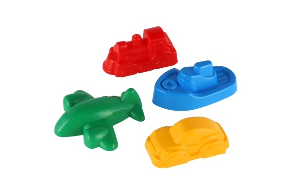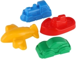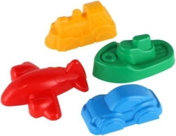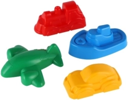 Šis 4 smėlio formelių rinkinys traukinio, laivo, lėktuvo ir automobilio formų pavers kiekvieną smėlio dėžę ar paplūdimį fantazijos kupinu pasauliu. Dėl kompaktiškų matmenų (apie 8–10 cm) vaikams patogu laikyti, o iš jų lengvai išsiima tobulai suformuoti smėlio pyragaičiai.