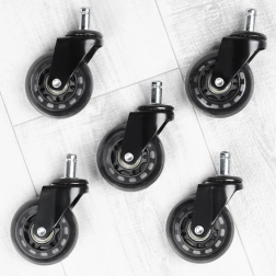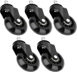 Patobulinkite savo biuro kėdę su 5 guminių ratukų rinkiniu, kuris užtikrins tylų ir tolygų važiavimą visų tipų kietomis grindimis. Dėl patvarios medžiagos ratukai yra atsparūs dėvėjimuisi ir švelnūs paviršiams, todėl nereikės jaudintis dėl įbrėžimų biure ar namuose.