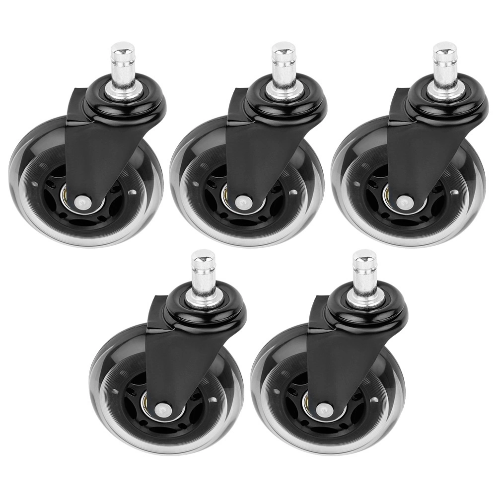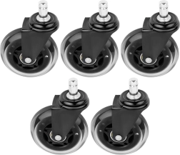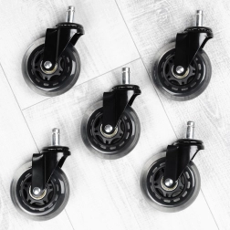 Praktiškas penkių atsarginių ratukų rinkinys biuro kėdėms užtikrina tylų ir sklandų riedėjimą ant kietų grindų be nemalonaus girgždėjimo. Guminis paviršius švelnus grindims ir atsparus dėvėjimuisi, todėl ratukai atlaiko kasdienį naudojimą biure ir namuose.