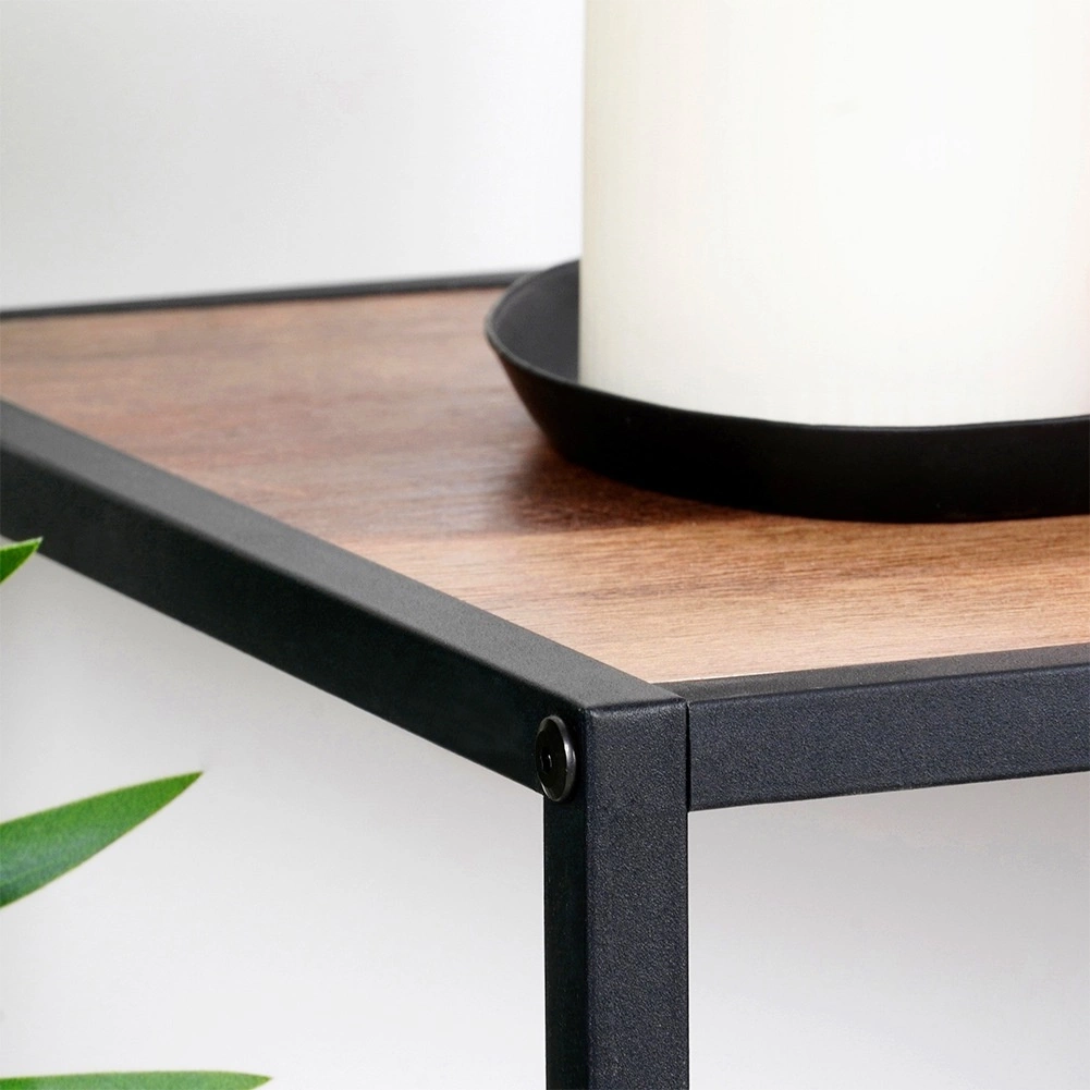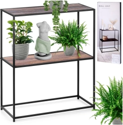 Ši dviejų aukštų lentyna, kurios matmenys 70 × 30,5 × 85 cm, idealiai tinka tvarkingam laikymui ir stilingam dekoracijų, knygų, augalų bei vonios ir virtuvės aksesuarų eksponavimui. Tvirtas metalinis rėmas juodos spalvos derinyje su MDF lentynomis, imituojančiomis medį, kuria modernų industrinį įvaizdį, tinkantį daugumai interjerų.