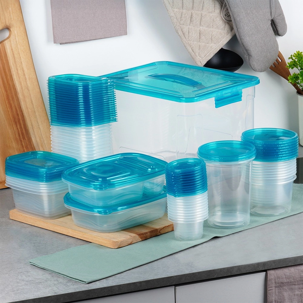 Šis universalus 50 vnt. rinkinys apima įvairių apvalių ir stačiakampių dėžučių derinį patogiam ingredientų, paruošto maisto ir užkandžių laikymui. Skaidrios sienelės leidžia aiškiai matyti turinį, o tvirti dangteliai patikimai sandarina ir apsaugo nuo kvapų sklidimo bei išdžiūvimo.