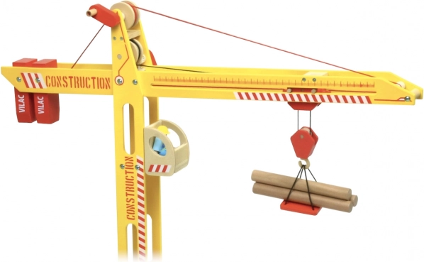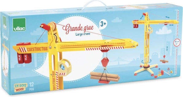 Didelis medinis VILAC kranas sužavės mažiuosius statybininkus realistiniu atlikimu – nuo kabinos ir priešsvorio iki veikiančios gervės. Dėl plačios pagrindo konstrukcijos kranas yra itin stabilus ir saugus. Vaikai gali laisvai sukti visą kraną, kelti ir stumti krovinius dviem sklandžiais suktukais, kas lavina motoriką, vaizduotę ir vaidmenų žaidimus.