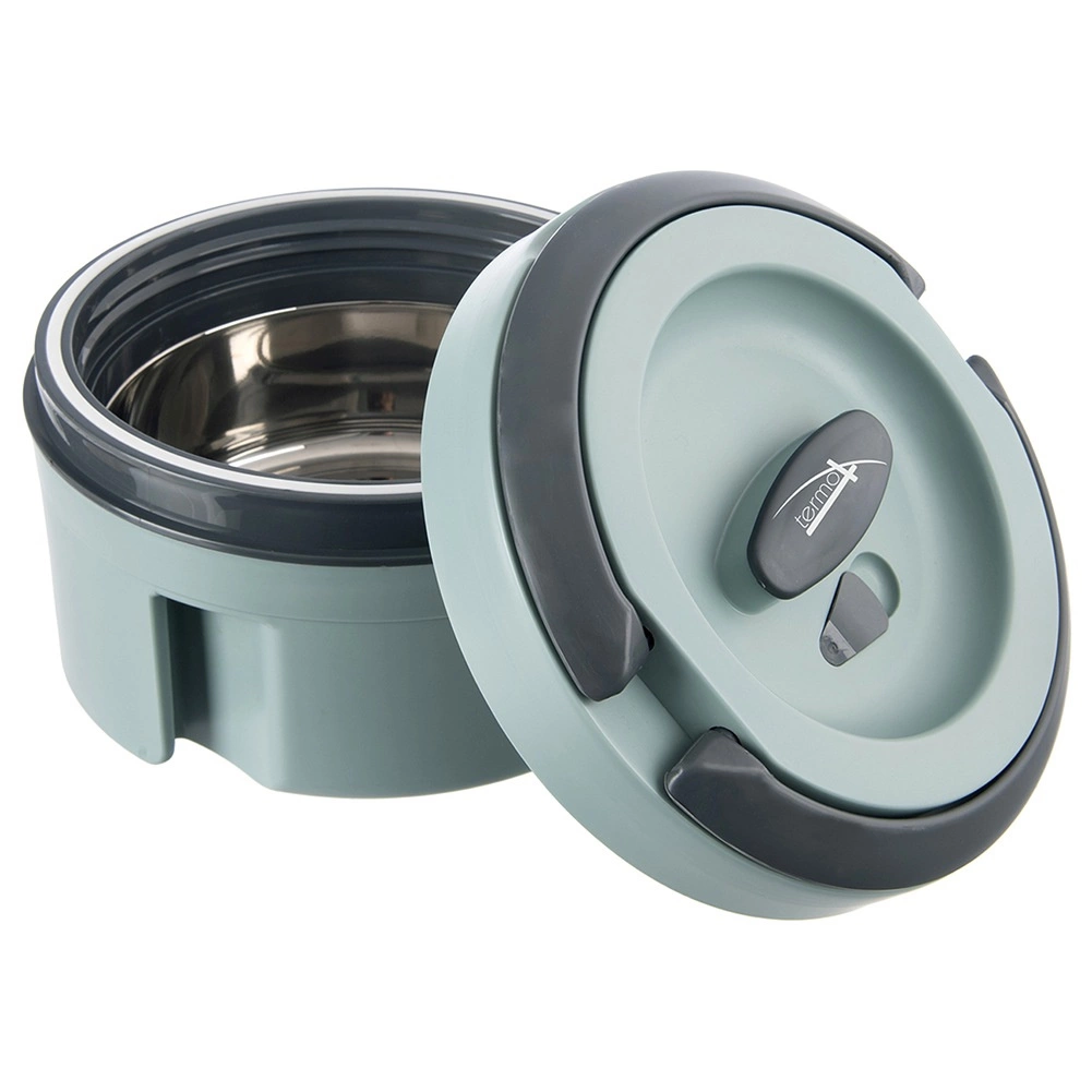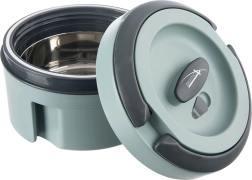 2,4 l talpos termo maisto indas sujungia patvarią nerūdijančio plieno vidinę dalį su tvirtu plastikiniu korpusu modernios mėtų spalvos. Dėl kokybiško sandarinimo ir vožtuvo dangtyje turinys saugiai uždaromas, be pratekėjimo rizikos, o atidaryti lengva išleidus slėgį.