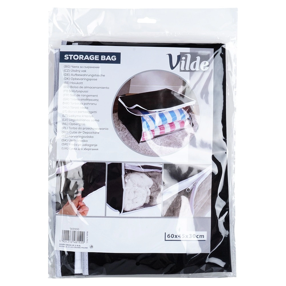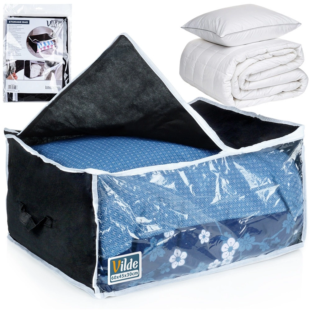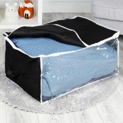 Praktiškas laikymo maišas patalynei, pledams, pagalvėms ir drabužiams saugo daiktus nuo drėgmės, dulkių ir kandžių. Dėl matmenų 65 × 45 × 30 cm ir 87 l tūrio siūlo didelę talpą, patogų laikymą spintoje ar po lova ir greitą peržiūrą per permatomą langelį.