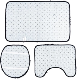 Stačiakampis kilimėlis prie vonios/dušo, U formos kilimėlis prie klozeto ir tualeto dangčio užvalkalas su gumele stabiliai fiksacijai.