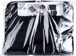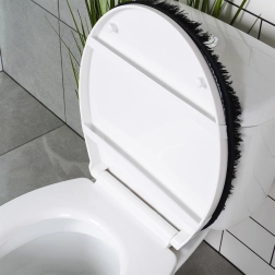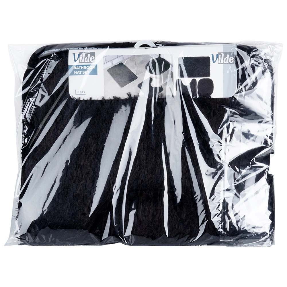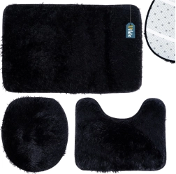Rinkinyje yra stačiakampis kilimėlis prie vonios ar dušo, U formos iškirptė prie klozeto pagrindo švariai ir patogiai erdvei aplink tualetą, bei tualeto dangčio užvalkalas su gumele, užtikrinančia tvirtą prilaikymą. Minimalistinė juoda spalva tinka bet kokiam interjerui ir pabrėžia vonios dizainą.
