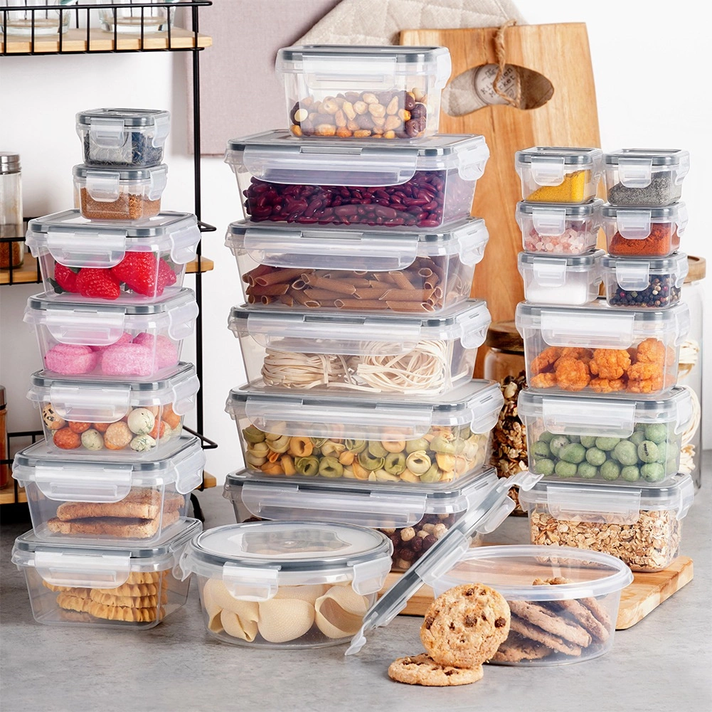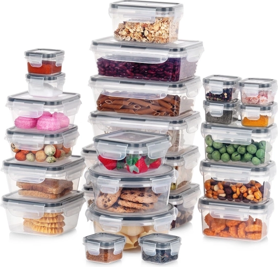 Šis universalus 24 dėžučių rinkinys iš septynių dydžių padės palaikyti tvarką spintelėje ir šaldytuve. Nuo mažų indelių prieskoniams ir padažams iki didesnių talpų makaronams, dribsniams ar paruoštiems patiekalams – visada matysite turinį dėl skaidraus plastiko ir būsite ramūs dėl tvirto dangtelio su 4 užraktais.