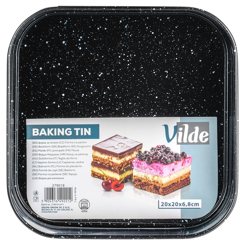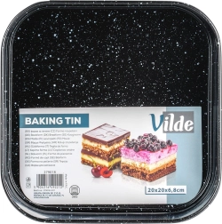 Kvadratinė 20 × 20 × 6,8 cm forma – puikus pasirinkimas kasdieniam kepimui. Tvirtas anglinis plienas užtikrina stabilumą ir tolygų šilumos pasiskirstymą, o granito danga mažina prilipimą net naudojant nedidelį riebalų kiekį. Dėl atsegamo rėmelio ir išimamo dugno išimsite paruoštą desertą nepažeisdami formos.