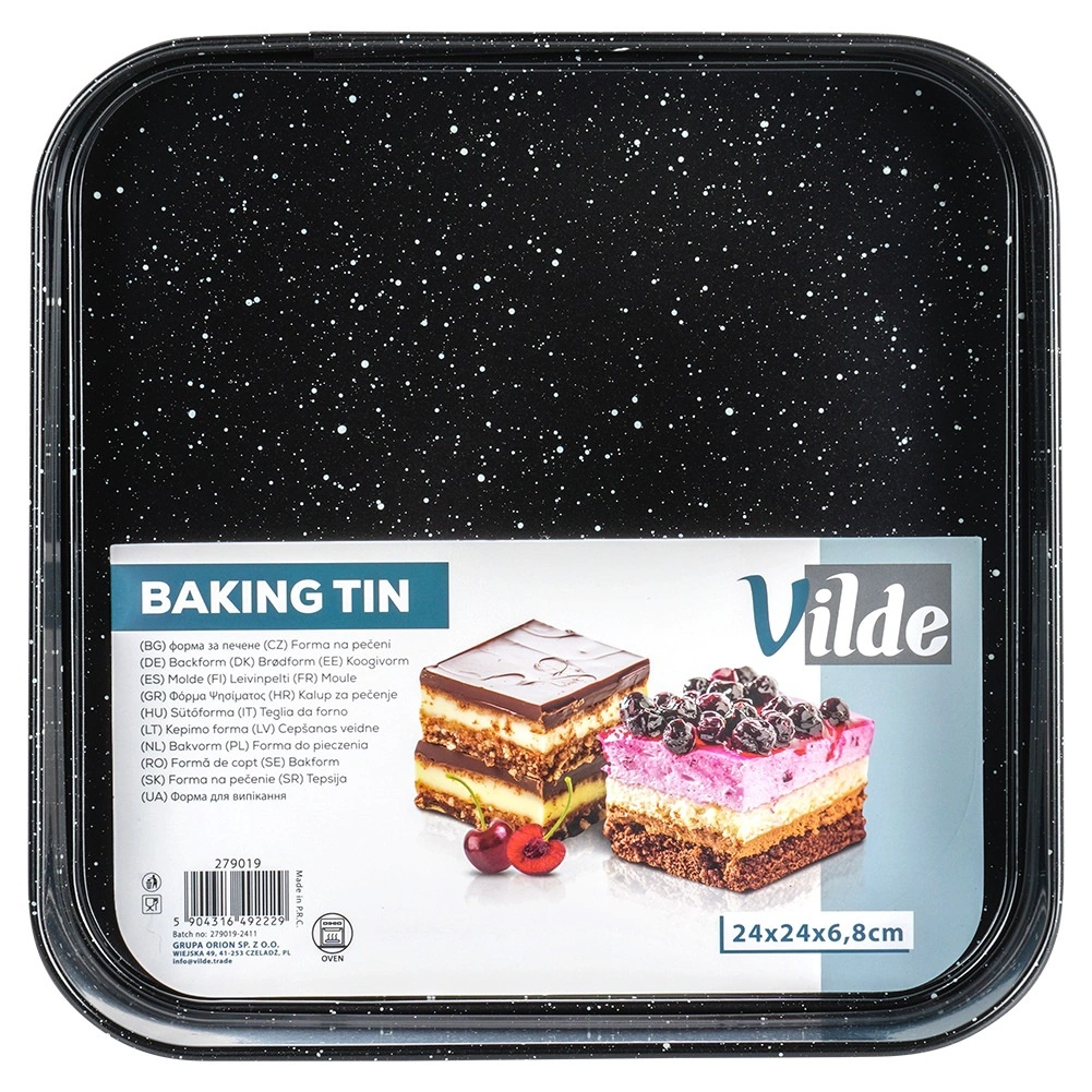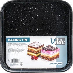Tvirtas anglinis plienas užtikrina tolygų šilumos paskirstymą, yra atsparus aukštai temperatūrai (iki 230 °C) ir neįgeria kvapų ar skysčių. Forma tinkama dujinėms ir elektrinėms orkaitėms, o kvadratinė forma puikiai tinka pyragams, pjautiniams gabaliniams desertams, sūrio pyragams, tortų pagrindams bei pikantiškiems apkepams.