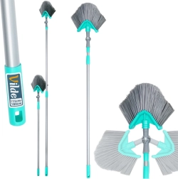 Praktiškas teleskopinis šepetys su trikampe pasukama galvute ir 115–180 cm ilgiu, skirtas lengvam kampų, lubų ir aukštų vietų valymui. Patvari metalinis kotas ir tankūs, tvirti šereliai veiksmingai surenka dulkes ir nešvarumus. Idealiai tinka namams, biurui ir sandėliui.