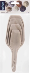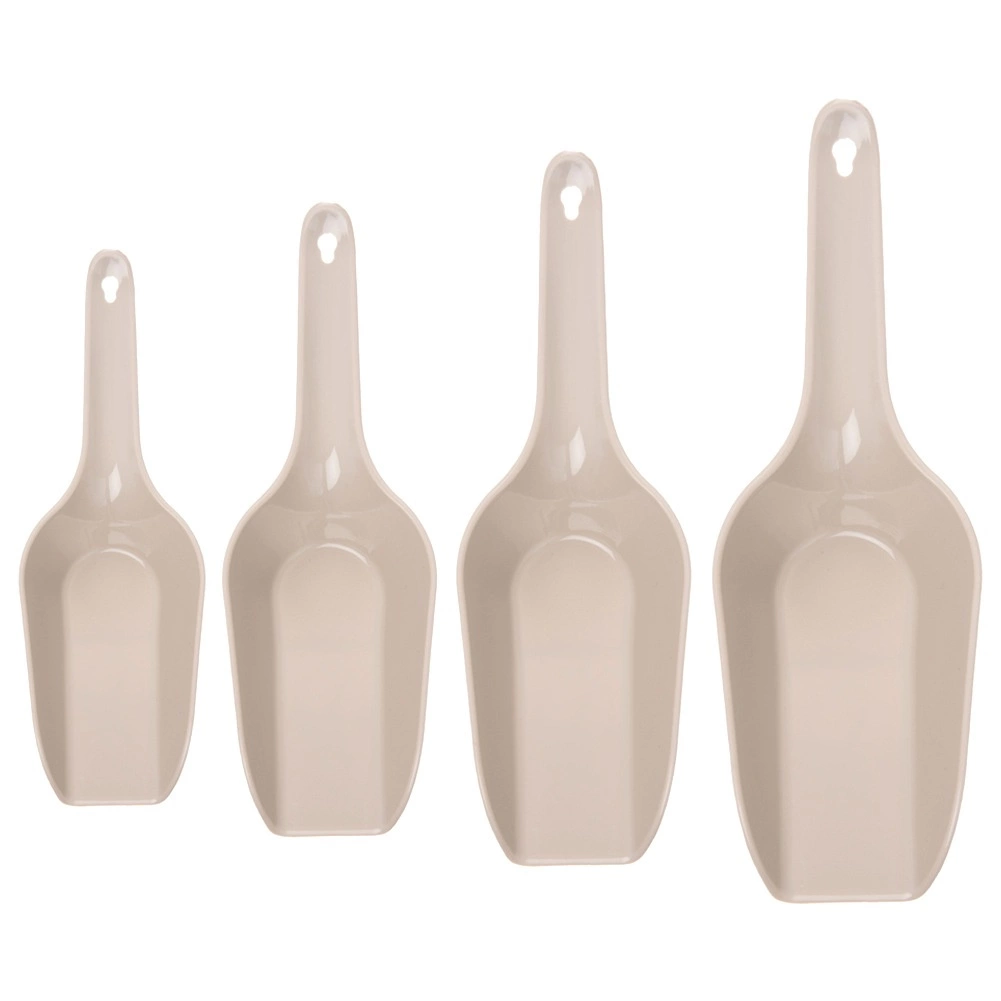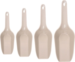 Praktiškas keturių skirtingų dydžių samtelių rinkinys patogiam birių produktų semimui ir persipylimui namuose bei gastronomijoje. Patvarus plastikas smėlio (bežinės) spalvos, patogios rankenos su skylute pakabinimui ir galima plauti indaplovėje. Universalus naudojimas miltams, cukrui, kavai, dribsniams, manų kruopoms, ledui ar naminių gyvūnų pašarui. Lygus paviršius lengvam valymui ir taupus, sudedamas laikymas.